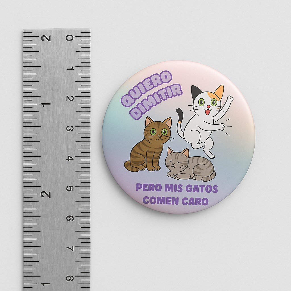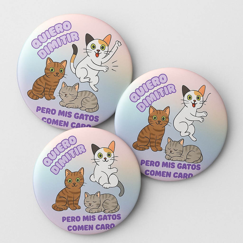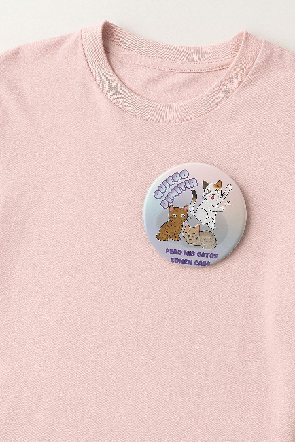 ¿Quién no ha tenido un día en el que solo quieres dimitir de todo… pero tus peludos tienen estándares de croquetas de lujo? Esta chapa combina humor millennial y ternura en un diseño irresistible. Con un fondo pastel suave y gatetes o perretes adorables, es perfecta para expresar tu hartazgo con estilo y un toque de ironía.