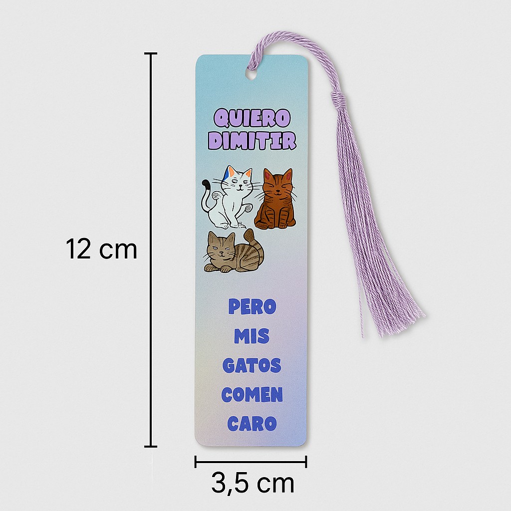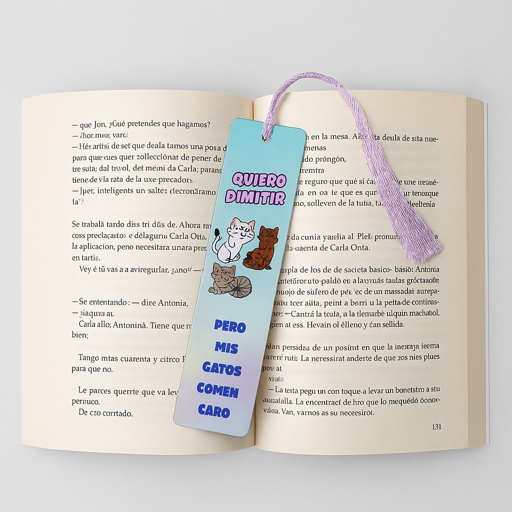 Este marcapáginas está hecho de aluminio resistente, con un diseño exclusivo que mezcla humor, ternura peluda y mucho estilo. Incluye una borla de color aleatorio que lo hace aún más divertido y fácil de localizar entre las páginas.