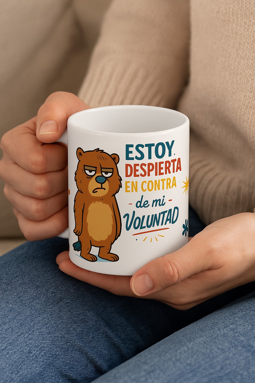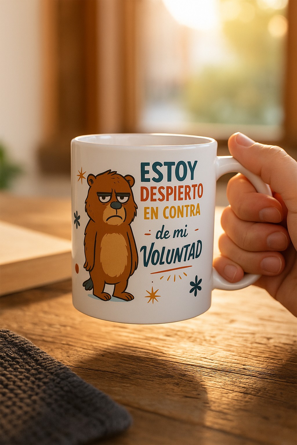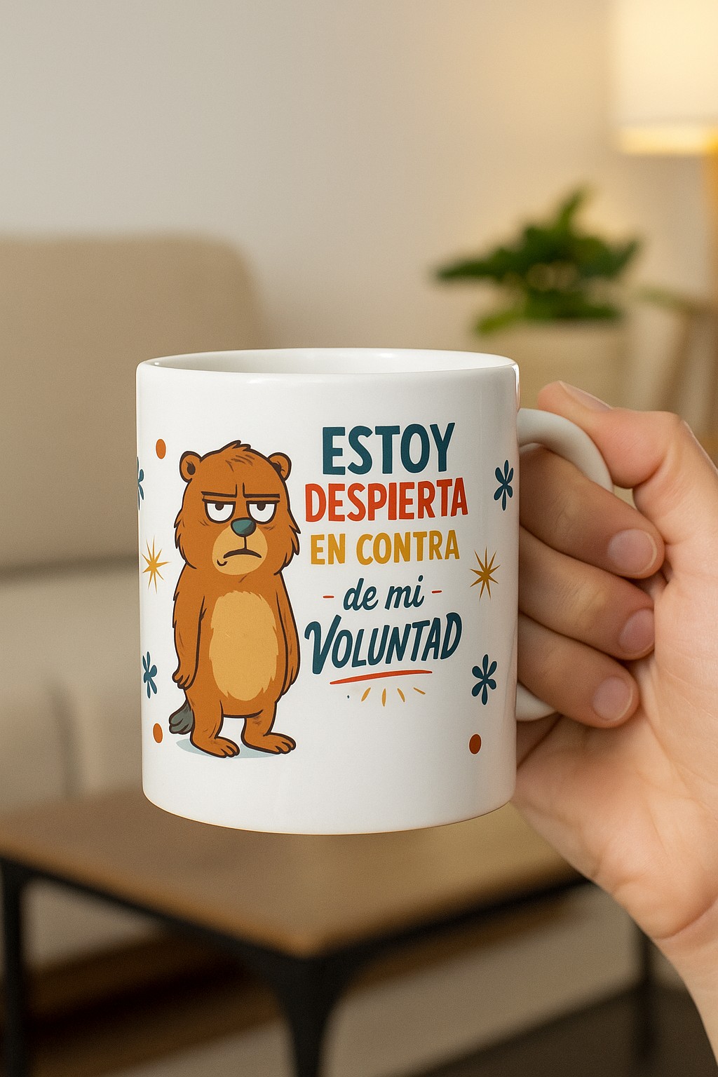 ¿No eres persona hasta que tomas café? Esta taza es para ti (o ese amigo que odia madrugar). Con un diseño divertido y un osito claramente molesto, esta taza expresa lo que muchos pensamos cada mañana: “Estoy despierto/a en contra de mi voluntad”. Perfecta para acompañarte en tus despertares más difíciles con café, té o chocolate caliente.